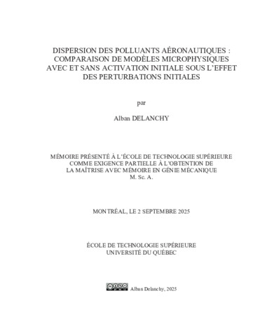Delanchy, Alban (2025). Dispersion des polluants aéronautiques : comparaison de modèles microphysiques avec et sans activation initiale sous l’effet des perturbations initiales. Mémoire de maîtrise électronique, Montréal, École de technologie supérieure.