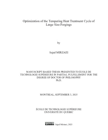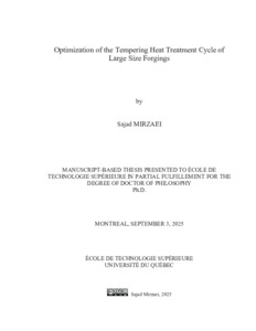 Mirzaei, Sajad (2025). Optimization of the tempering heat treatment cycle of large size forgings. Thèse de doctorat électronique, Montréal, École de technologie supérieure.