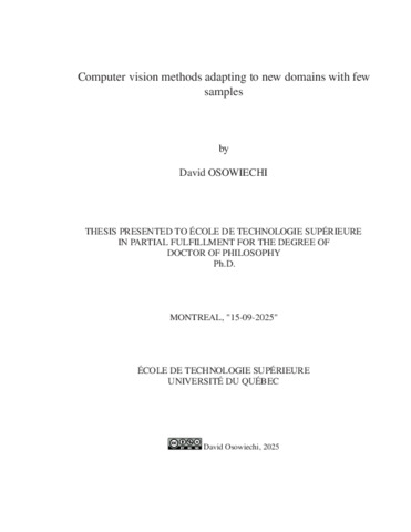 Osowiechi, David (2025). Computer vision methods adapting to new domains with few samples. Thèse de doctorat électronique, Montréal, École de technologie supérieure.