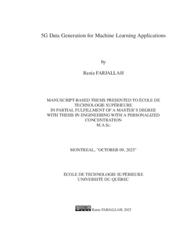 Farjallah, Rania (2025). 5G data generation for machine learning applications. Mémoire de maîtrise électronique, Montréal, École de technologie supérieure.
