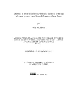 Mateur, Wael (2025). Étude de la finition humide sur machine-outil des arêtes des pièces en granites en utilisant différents outils de forme. Mémoire de maîtrise électronique, Montréal, École de technologie supérieure.