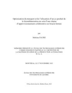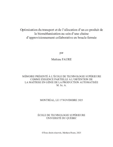 Faure, Mathieu (2025). Optimisation du transport et de l’allocation d’un co-produit de la biométhanisation au sein d’une chaine d’approvisionnement collaborative en boucle fermée. Mémoire de maîtrise électronique, Montréal, École de technologie supérieure.