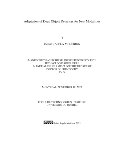 Rapela Medeiros, Heitor (2025). Adaptation of deep object detectors for new modalities. Thèse de doctorat électronique, Montréal, École de technologie supérieure.