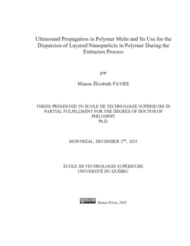 Favre, Manon Élisabeth (2025). Ultrasound propagation in polymer melts and its use for the dispersion of layered nanoparticle in polymer during the extrusion process. Thèse de doctorat électronique, Montréal, École de technologie supérieure.
