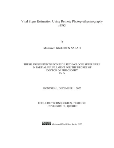 Ben Salah, Mohamed Khalil (2025). Vital signs estimation using remote photoplethysmography rPPG. Thèse de doctorat électronique, Montréal, École de technologie supérieure.