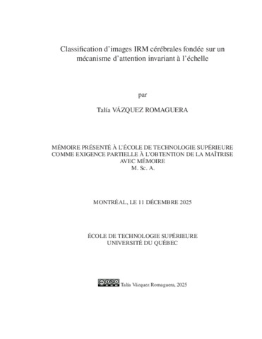 Vázquez Romaguera, Talía (2025). Classification d’images IRM cérébrales fondée sur un mécanisme d’attention invariant à l’échelle. Mémoire de maîtrise électronique, Montréal, École de technologie supérieure.
