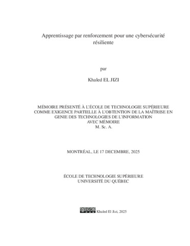 El Jizi, Khaled (2025). Apprentissage par renforcement pour une cybersécurité résiliente. Mémoire de maîtrise électronique, Montréal, École de technologie supérieure.