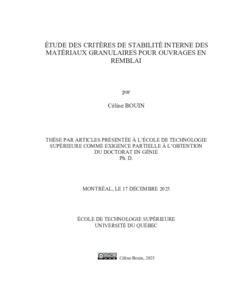 Bouin, Céline (2025). Étude des critères de stabilité interne des matériaux granulaires pour ouvrages en remblai. Thèse de doctorat électronique, Montréal, École de technologie supérieure.