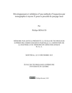 Renaud, Phillipe (2025). Développement et validation d’une méthode d’inspection par tomographie à rayons X pour le procédé de perçage laser. Mémoire de maîtrise électronique, Montréal, École de technologie supérieure.