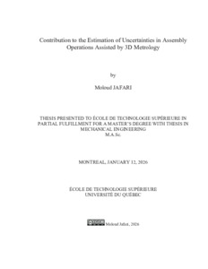 Jafari, Moloud (2026). Contribution to the estimation of uncertainties in assembly operations assisted by 3D metrology. Mémoire de maîtrise électronique, Montréal, École de technologie supérieure.