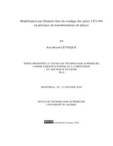 Lévesque, Jean-Benoît (2026). Modélisation par éléments finis du soudage des aciers 13Cr-4Ni en présence de transformations de phases. Thèse de doctorat électronique, Montréal, École de technologie supérieure.
