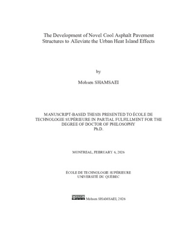 Shamsaei, Mohsen (2026). The development of novel cool asphalt pavement structures to alleviate the urban heat island effects. Thèse de doctorat électronique, Montréal, École de technologie supérieure.
