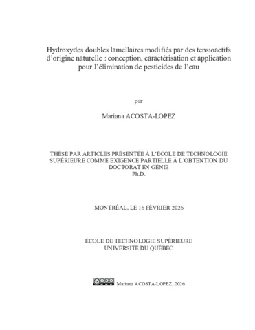Acosta-Lopez, Mariana (2026). Hydroxydes doubles lamellaires modifiés par des tensioactifs d’origine naturelle : conception, caractérisation et application pour l’élimination de pesticides de l’eau. Thèse de doctorat électronique, Montréal, École de technologie supérieure.