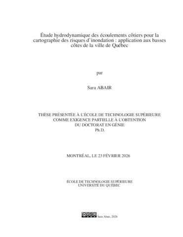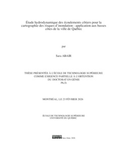 Abair, Sara (2026). Étude hydrodynamique des écoulements côtiers pour la cartographie des risques d’inondation : application aux basses côtes de la ville de Québec. Thèse de doctorat électronique, Montréal, École de technologie supérieure.