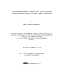 Soleimanipour, Matin (2026). Electromagnetic design, analysis, and optimization of an interior permanent magnet motor for robotic application. Mémoire de maîtrise électronique, Montréal, École de technologie supérieure.